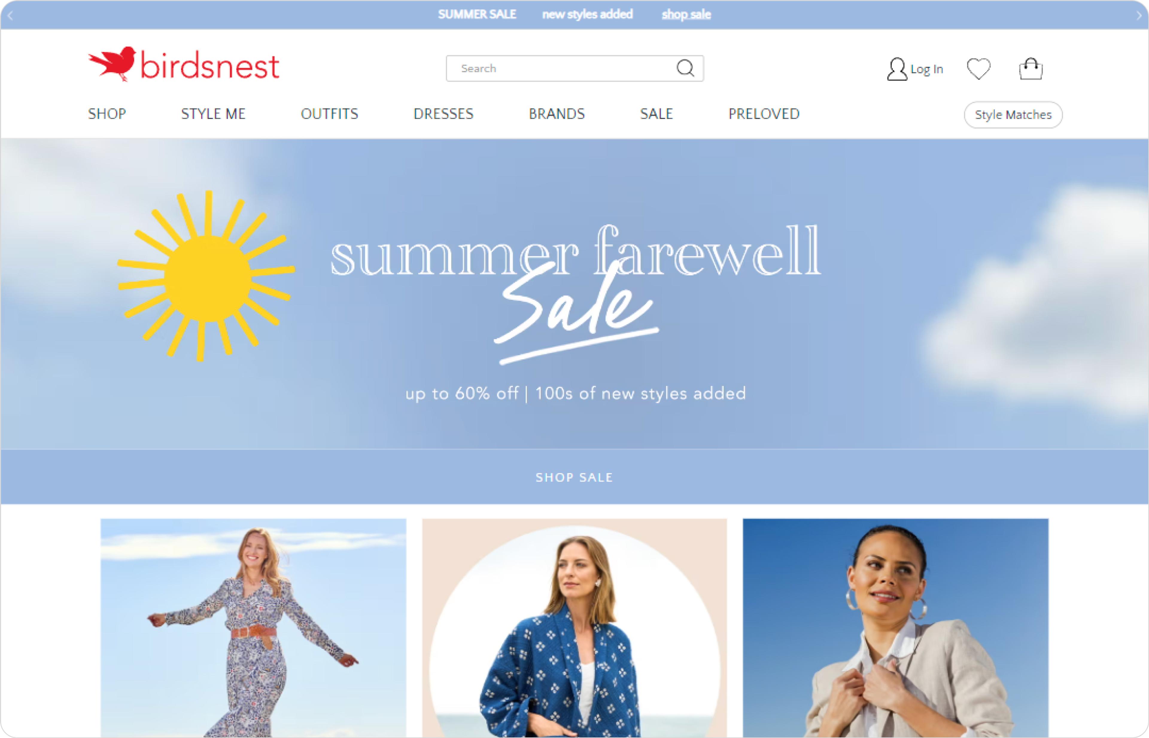 Birdsnest is a leading Australian online fashion retailer known for its curated collection of stylish and contemporary women's clothing. Offering a diverse range of brands and exclusive pieces, Birdsnest provides a personalised shopping experience with tailored recommendations and styling advice.