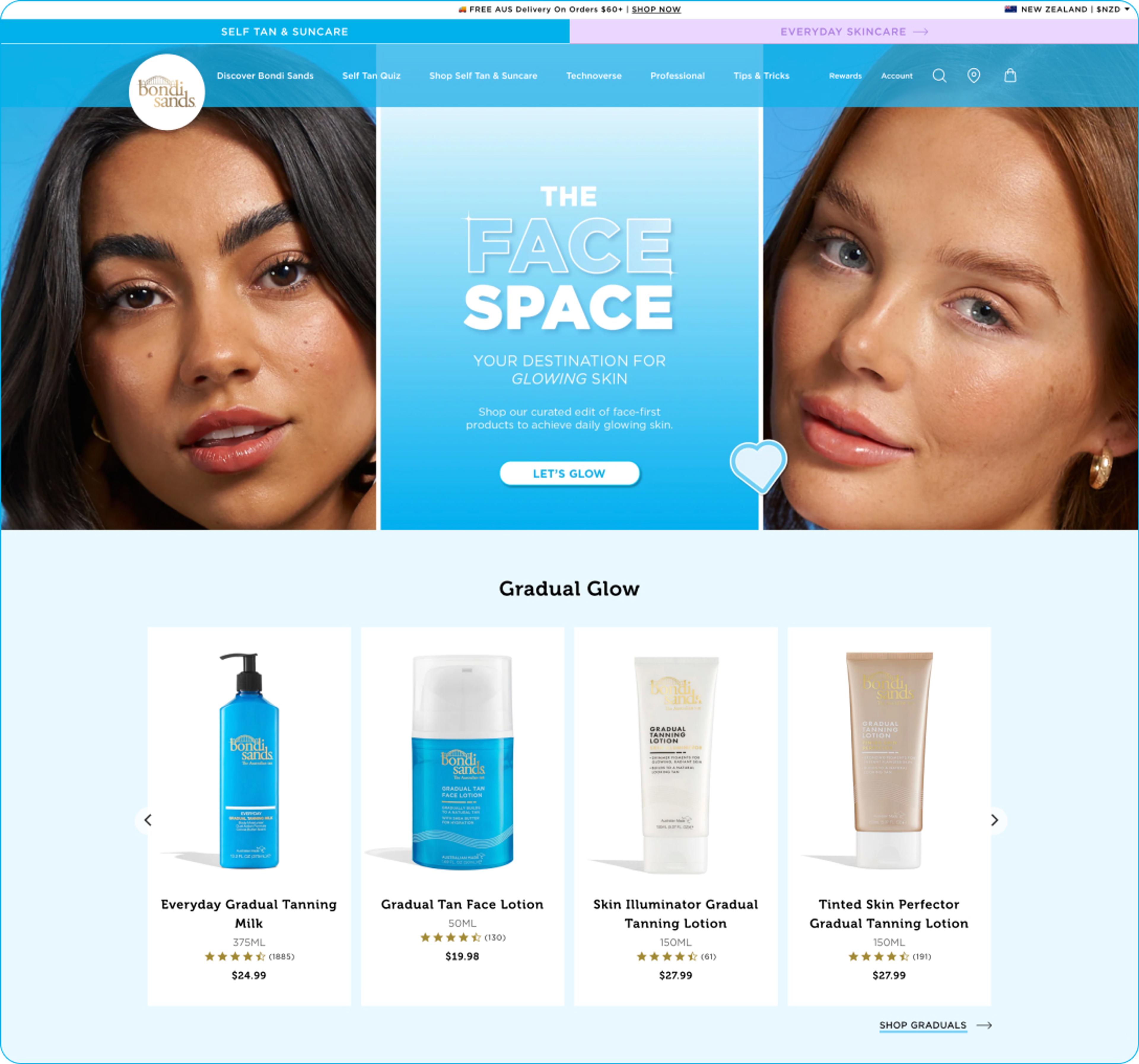 | Launching a new skincare product range | Bondi Sands wanted to introduce a skincare range alongside their self-tan products. We successfully launched the new range with fresh branding and a custom homepage, while integrating it into the same Shopify Plus instance for ease of management. The two ranges now coexist seamlessly, allowing the Bondi Sands team to cross-market without confusing the customer experience. |