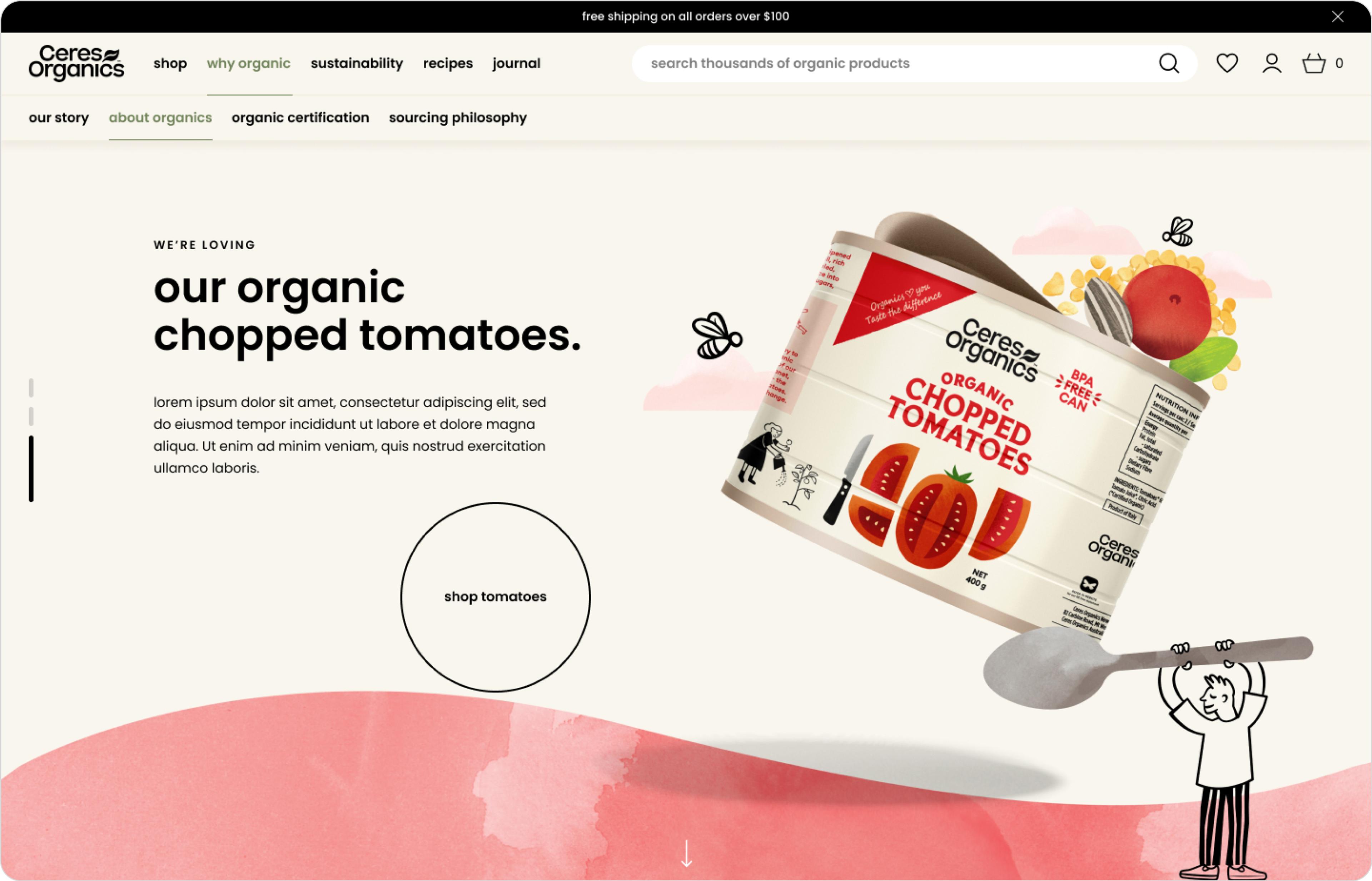 | Recipes | Over the years, Ceres Organics has curated an amazing recipe book featuring organic ingredients. Moustache Republic created a unique recipe section on the site using Shopify’s blog engine. Customers can browse, filter, and search recipes, and purchase ingredients directly from the recipe pages, enhancing the user experience and driving sales. |