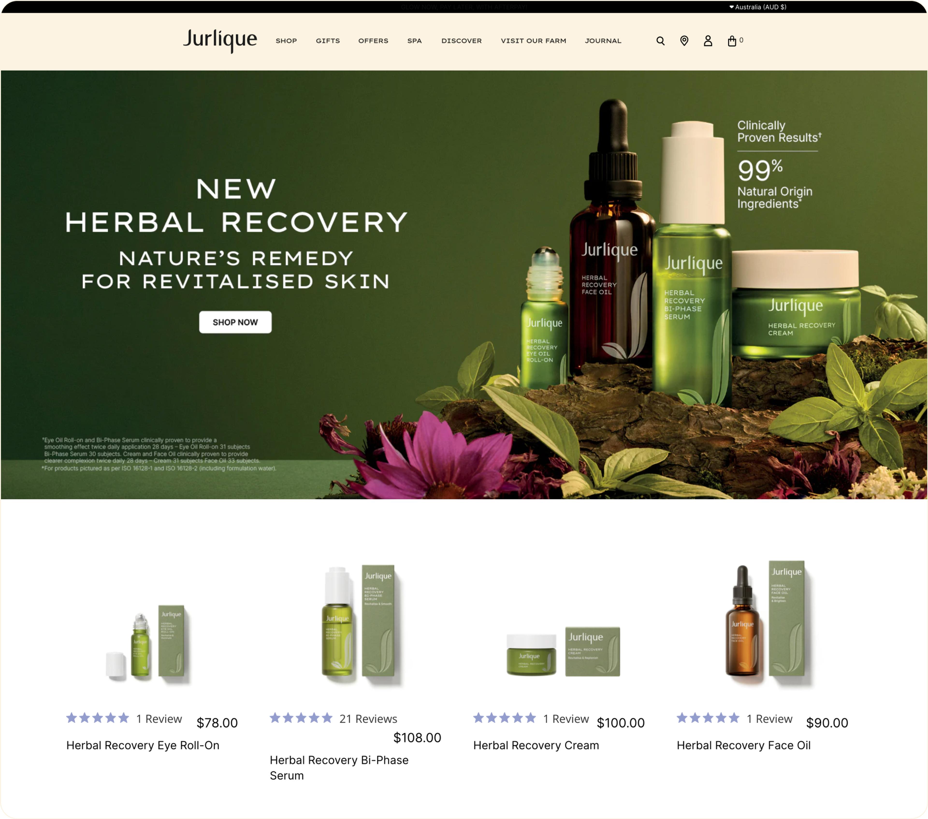 Moustache Republic successfully migrated Jurlique's eCommerce platform from Salesforce to Shopify Plus, aiming to improve UX and reduce the total cost of ownership. Completed in just three months, the project included comprehensive data migration and custom integration with Jurlique's JDE ERP system, ensuring a seamless transition and enhanced operational efficiency.