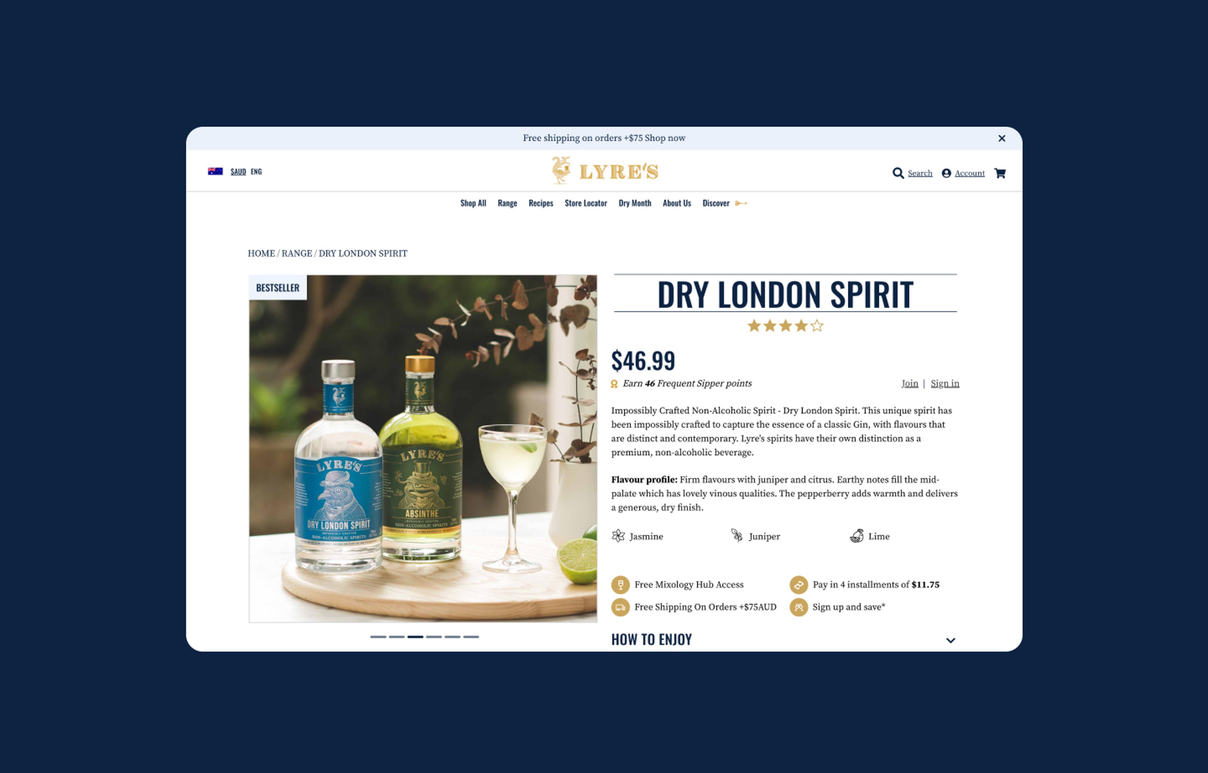 | quick and cost effective global aspirations | SaaS led eCommerce means Lyre’s can enjoy the benefits of ‘plug-and-play’ app technology that requires minimal development intervention. Features like localised tax and shipping have been solved with SaaS solutions. |