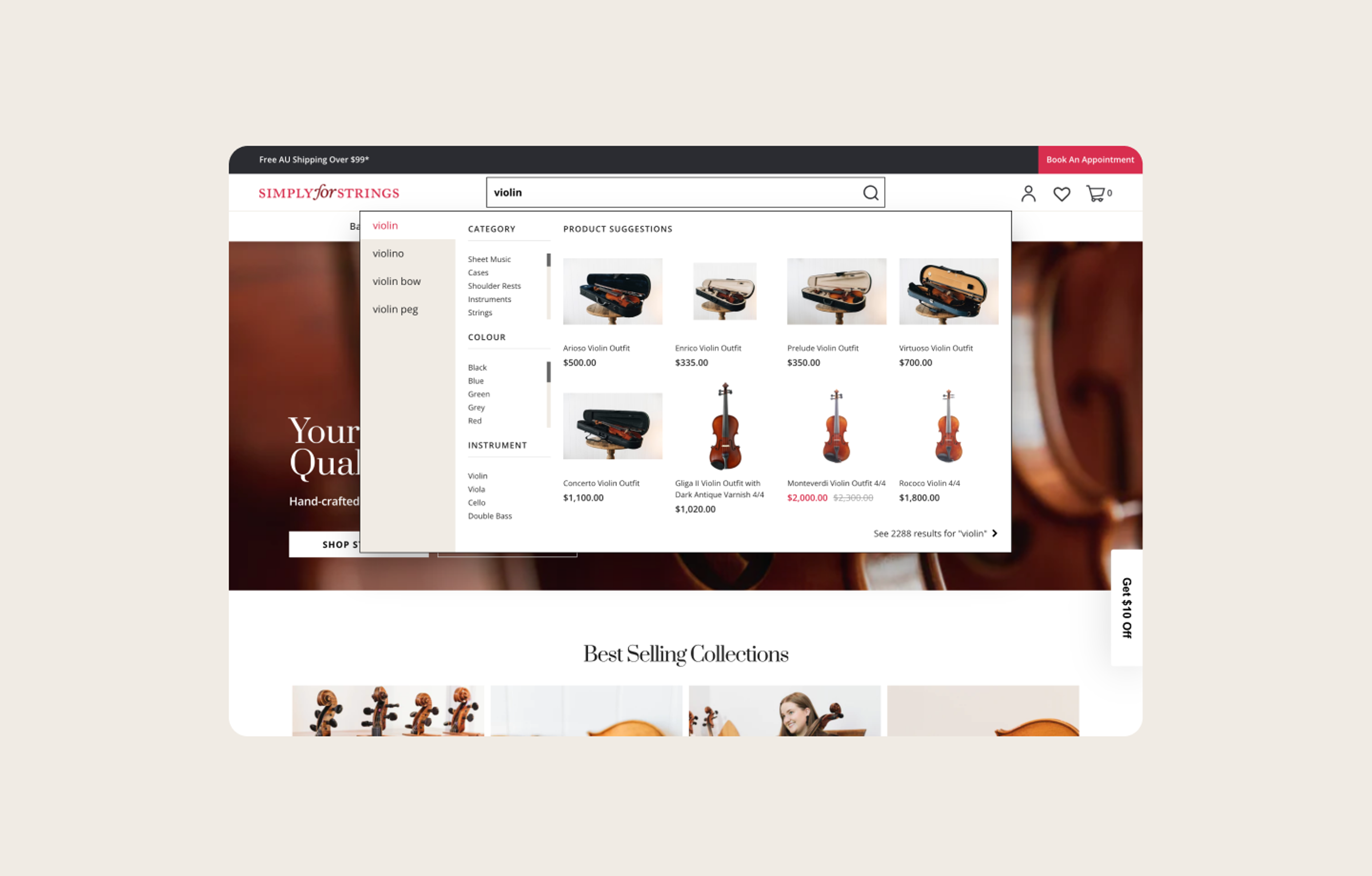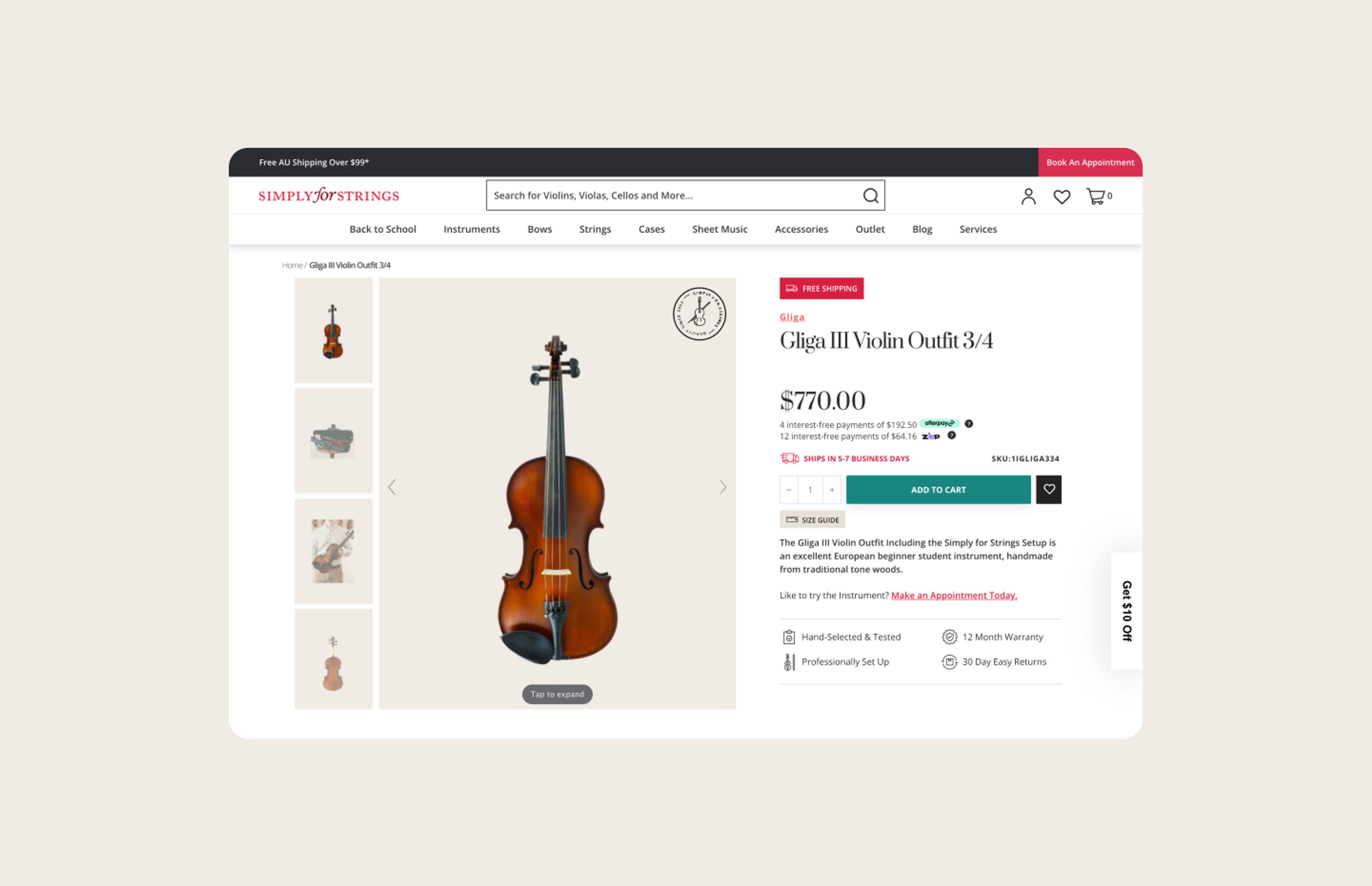 | Increase Customisations | With a wide range of unique product requirements, customisation ability for Simply For Strings was critical. With Shopify Plus, Moustache Republic was able to customise the entire design and digital experience tailored to the Simply For Strings customer. |